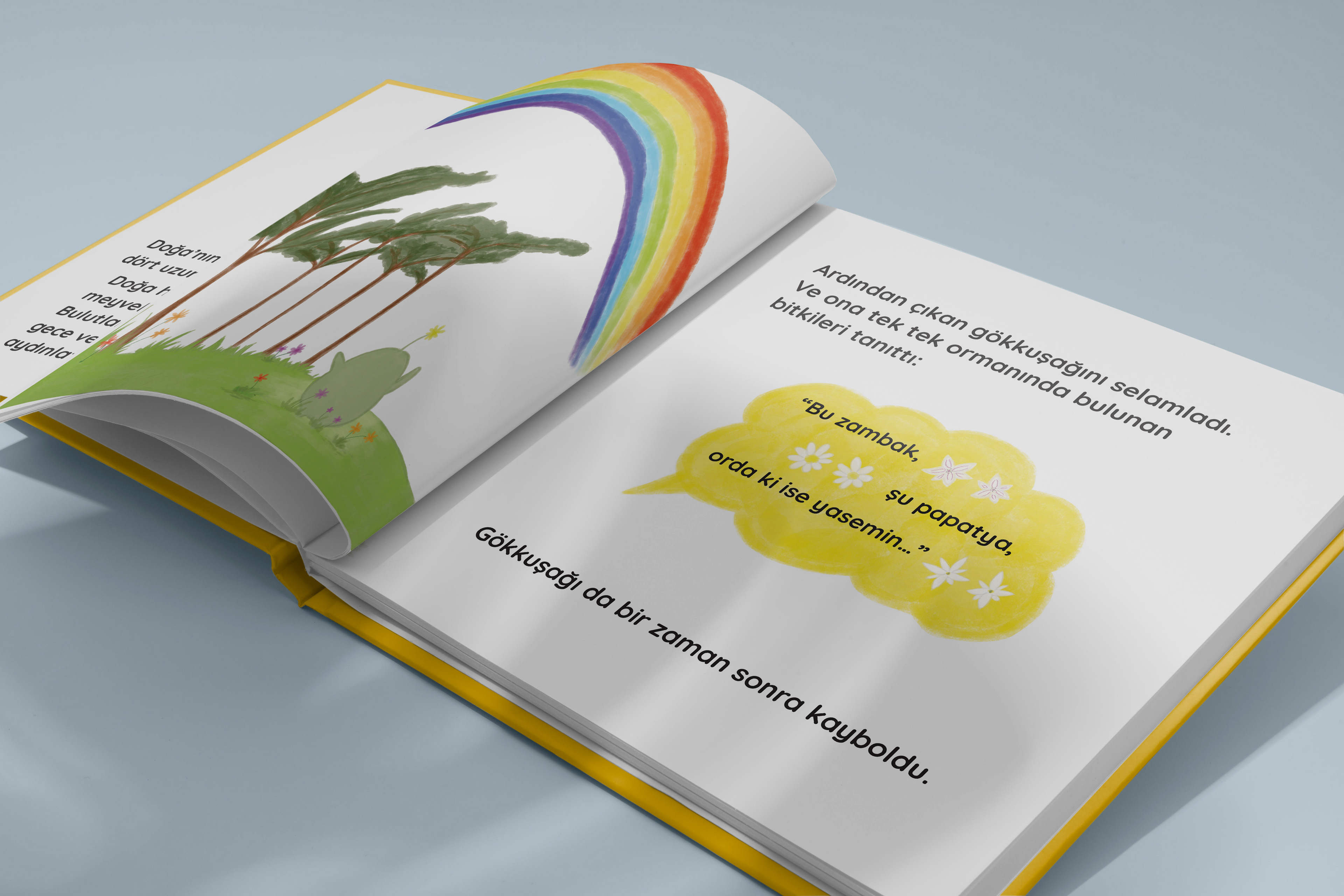 I had a great time illustrating the story, and creating this bubbly Doğa character which symbolize nature. Spot Doğa character throughout the book :D!