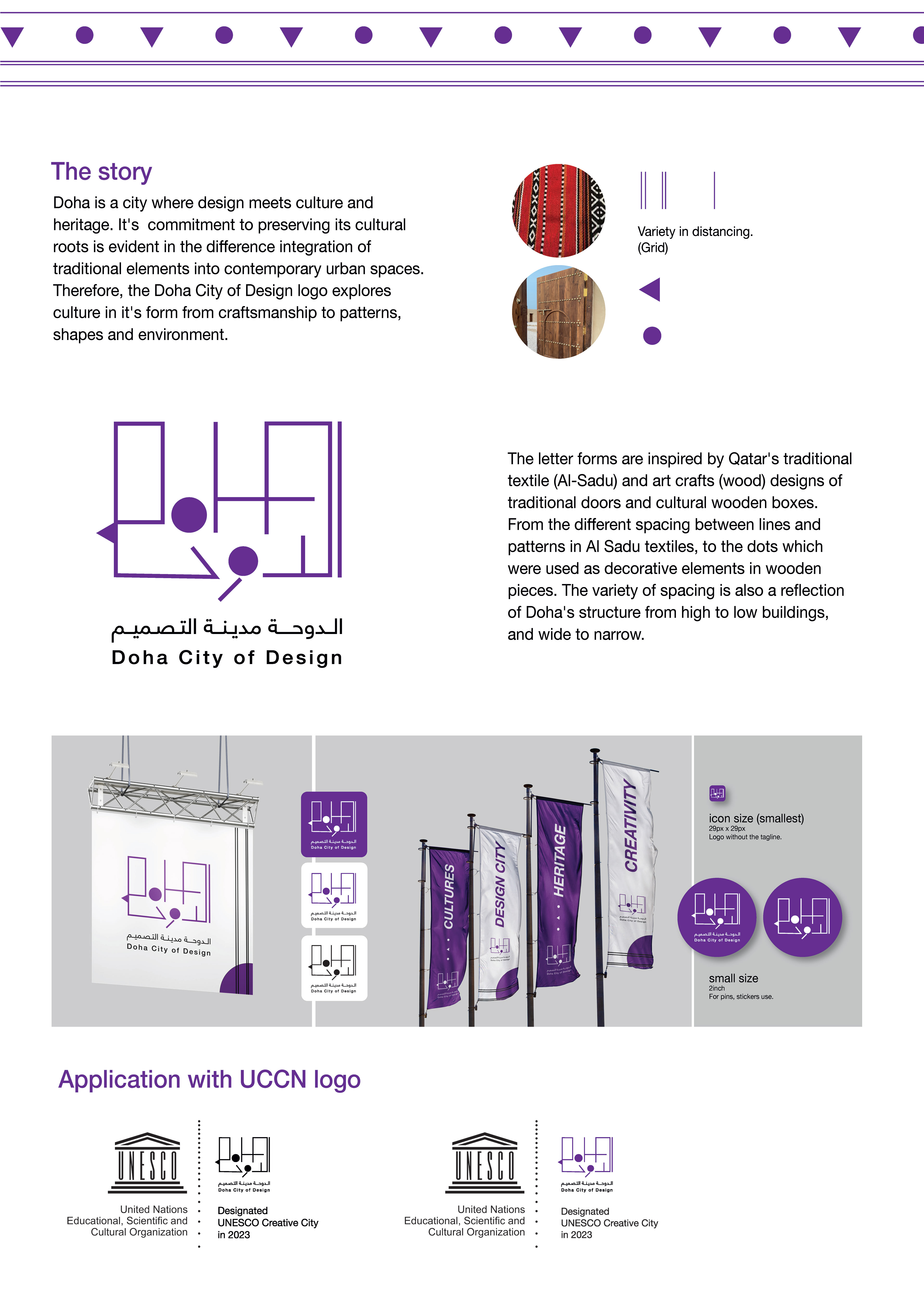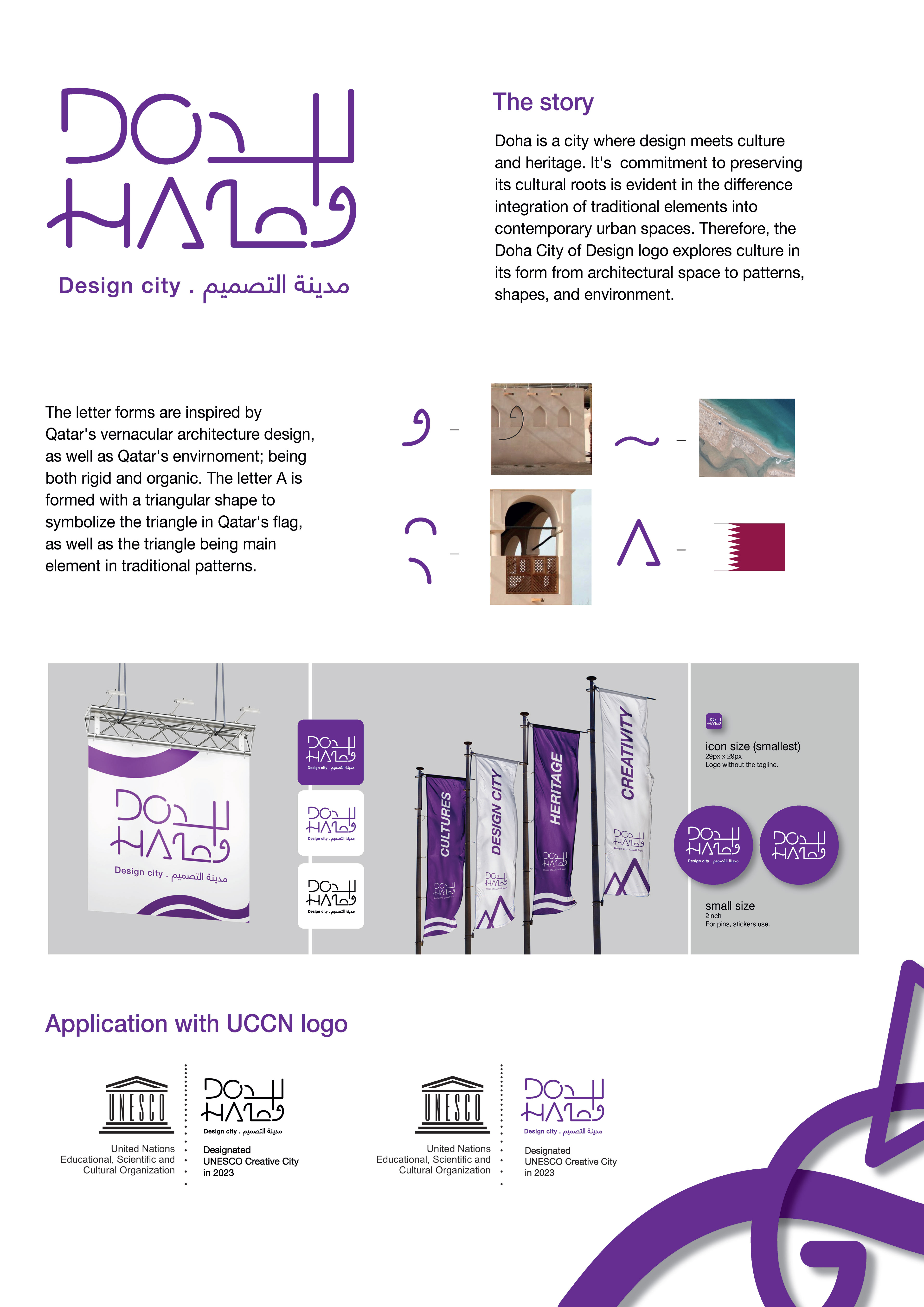 A Design proposal made as part of Design Doha Open call to design a logo representing Doha as a city of design. The two logo proposal is inspired by Doha's culture and environment, transforming cultural elements into a typographic minimal logo.
